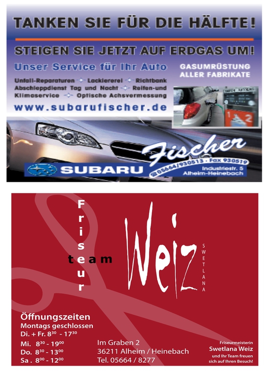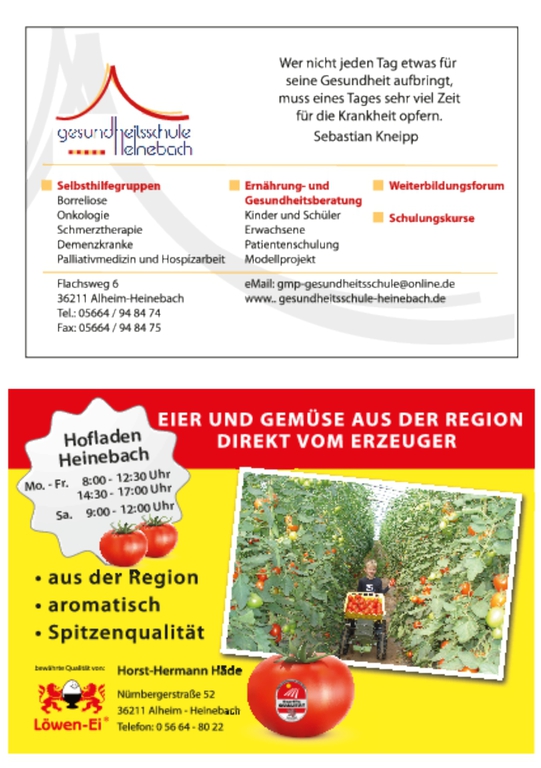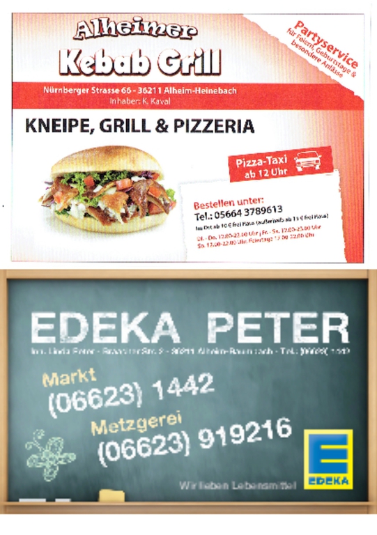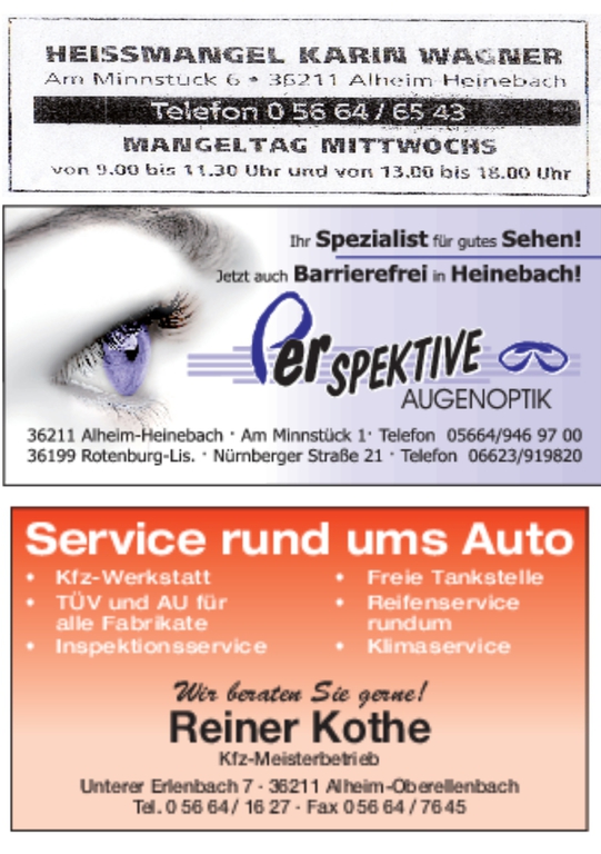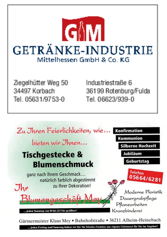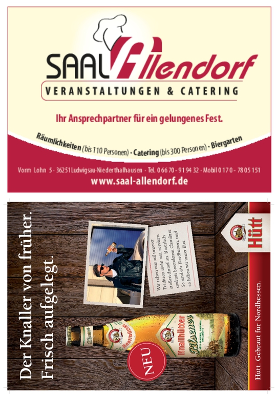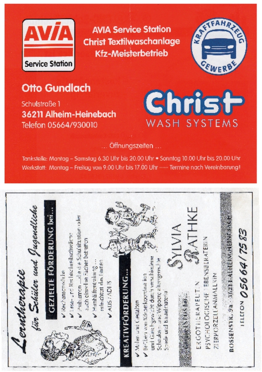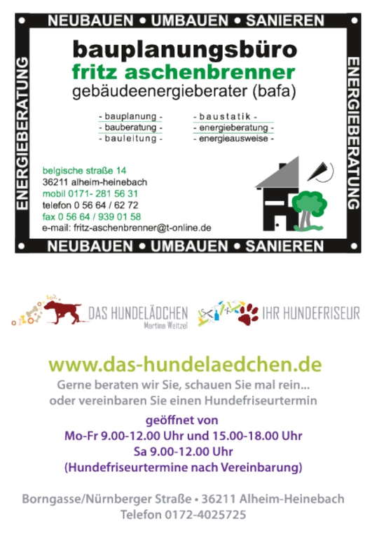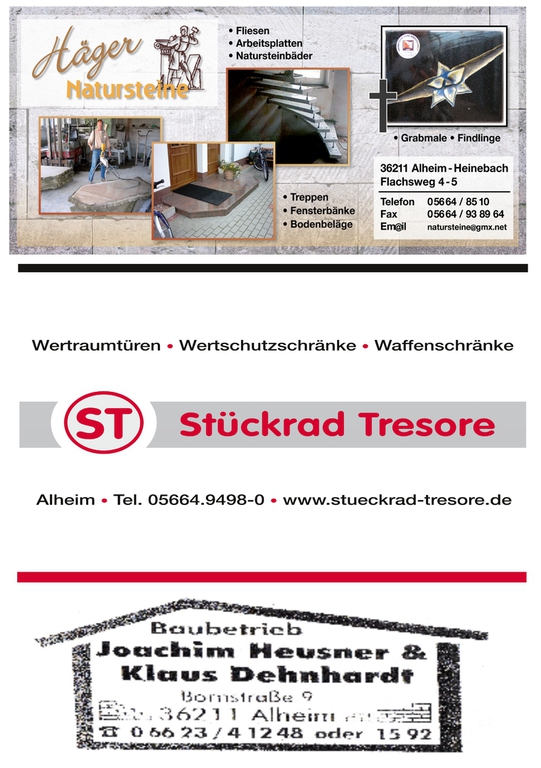 BauSpezi Schäfer - Krug Internationale Spedition - Bankverein Bebra eG - Kirchner Solar Group - Fritz Franke - Gaststätte "Am Gänsemart" - Naumann - B3-Folientechnik - Firma Pfetzing - Sparkasse Bad Hersfeld/Rotenburg - Baumit Bayosan - Alheimer Apotheke - Per-Spektive - HKW - Brauerei Hütt - Lackiererei Klaus Sukkau - Friseurteam Weiz - Kosel - Dachdecker Th. Jäger - E.ON - Martin Haustechnik - Landhaus Licherode - Das Hundelädchen